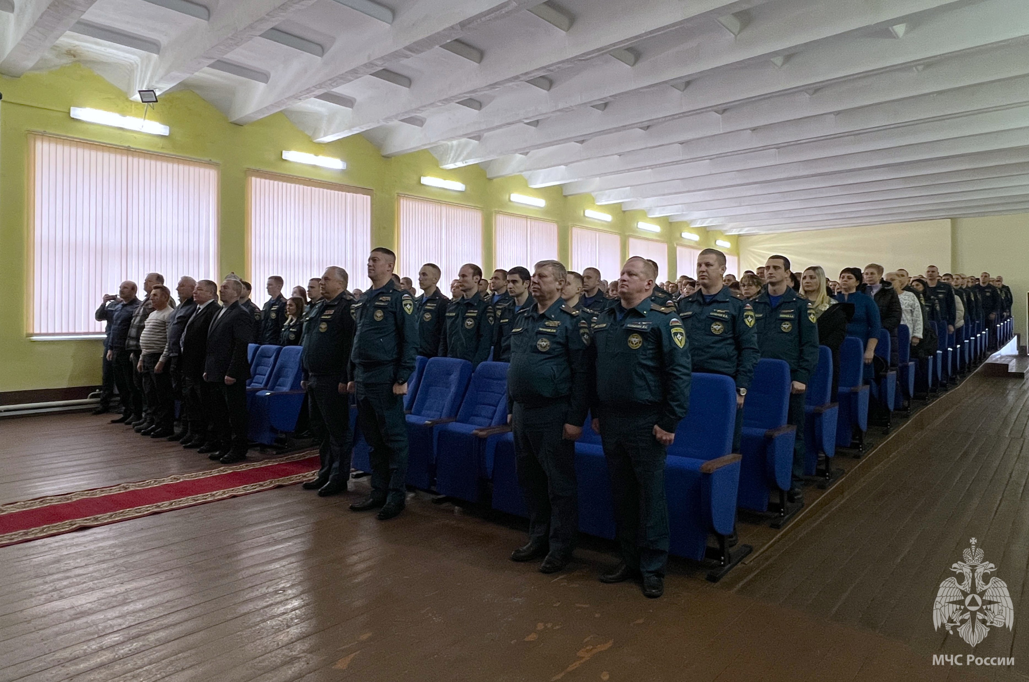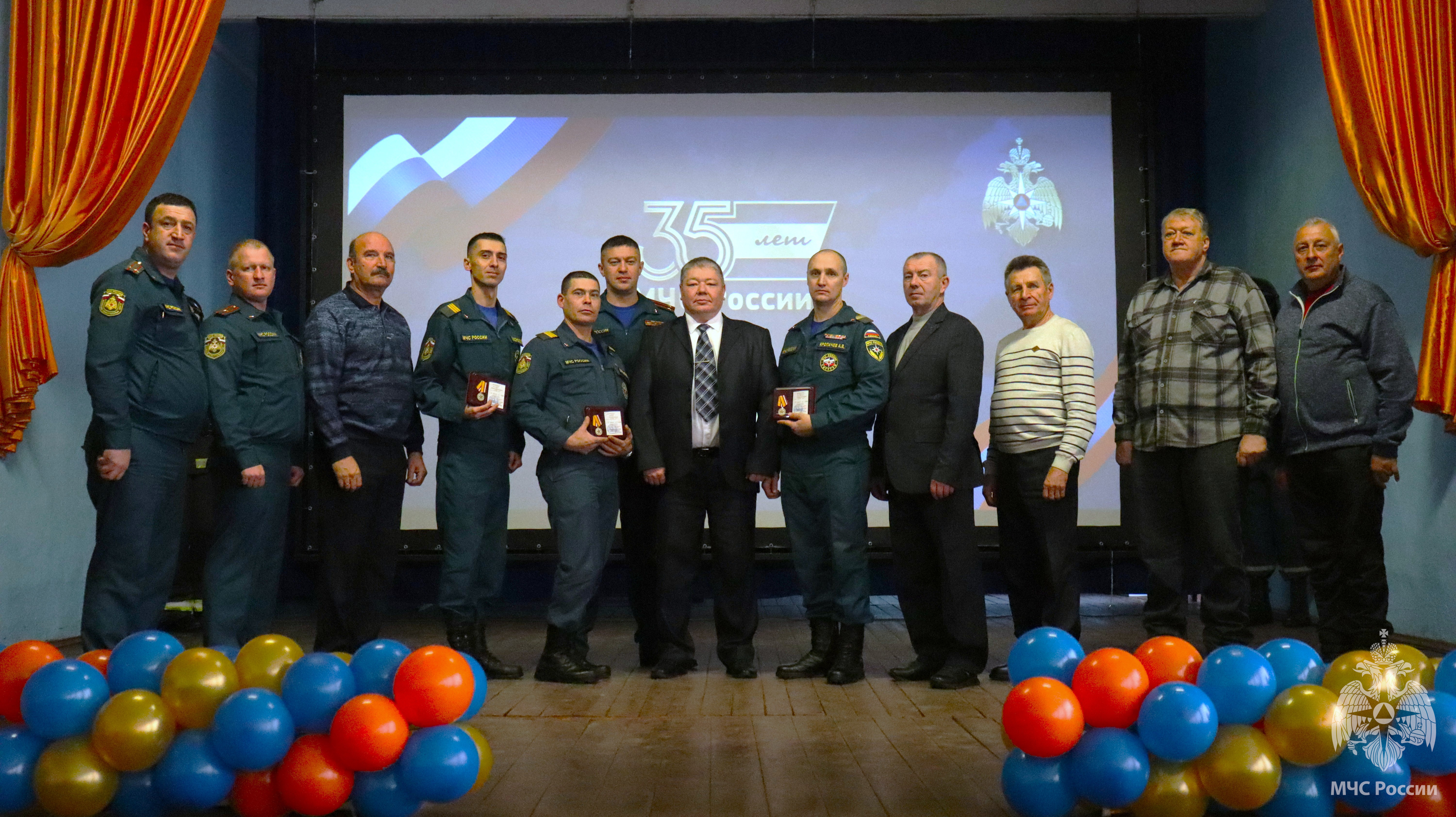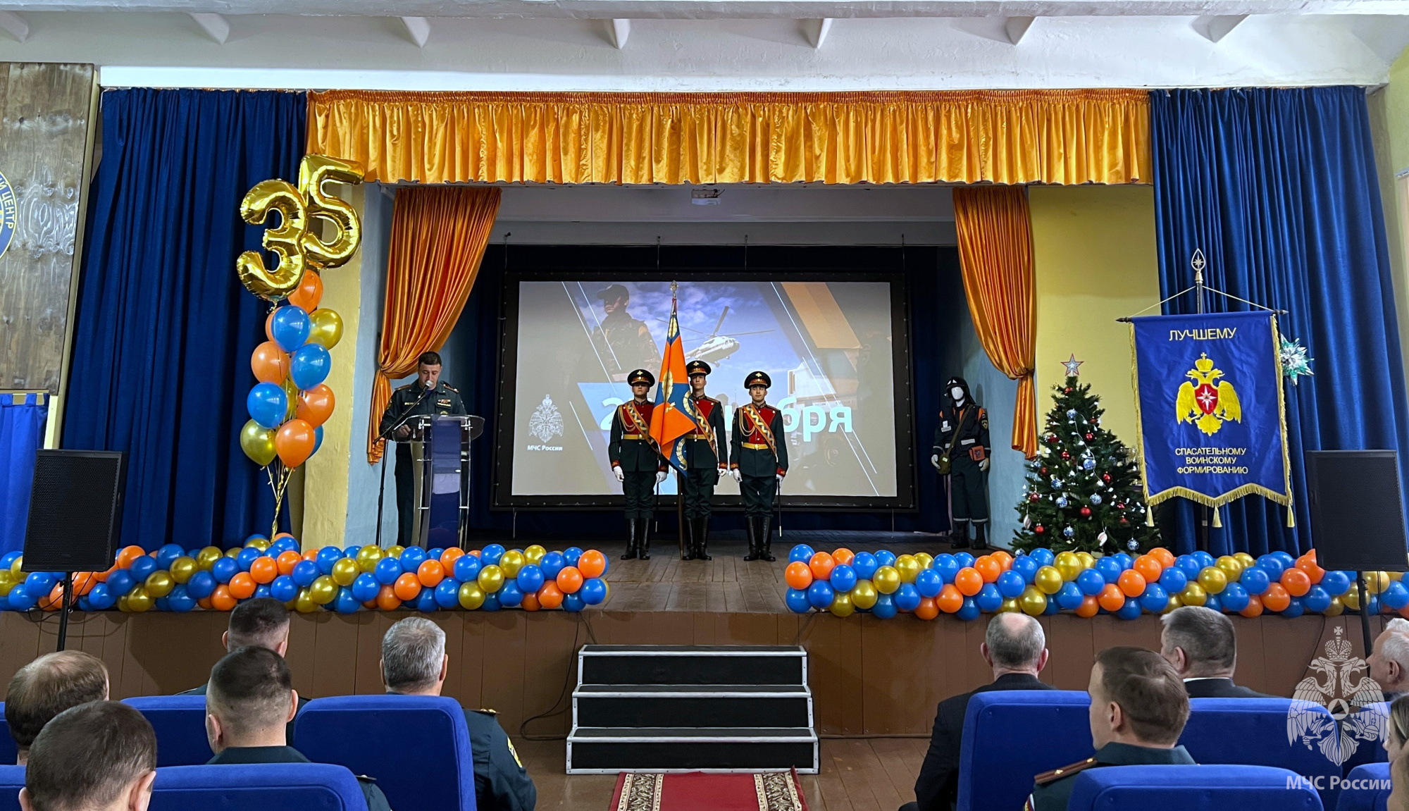 Торжественное мероприятие, посвященное празднованию Дня спасателя Российской Федерации и 35-летию МЧС России, началось с вноса боевого знамени знаменной группой в клуб СЦ.