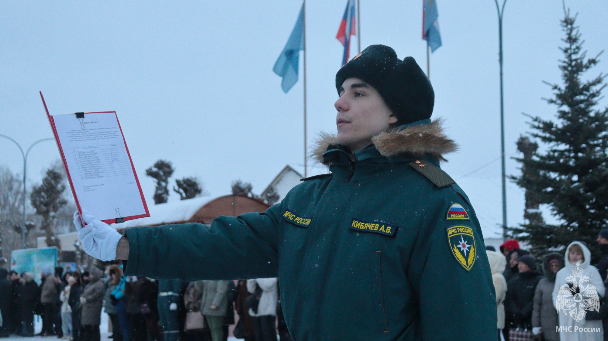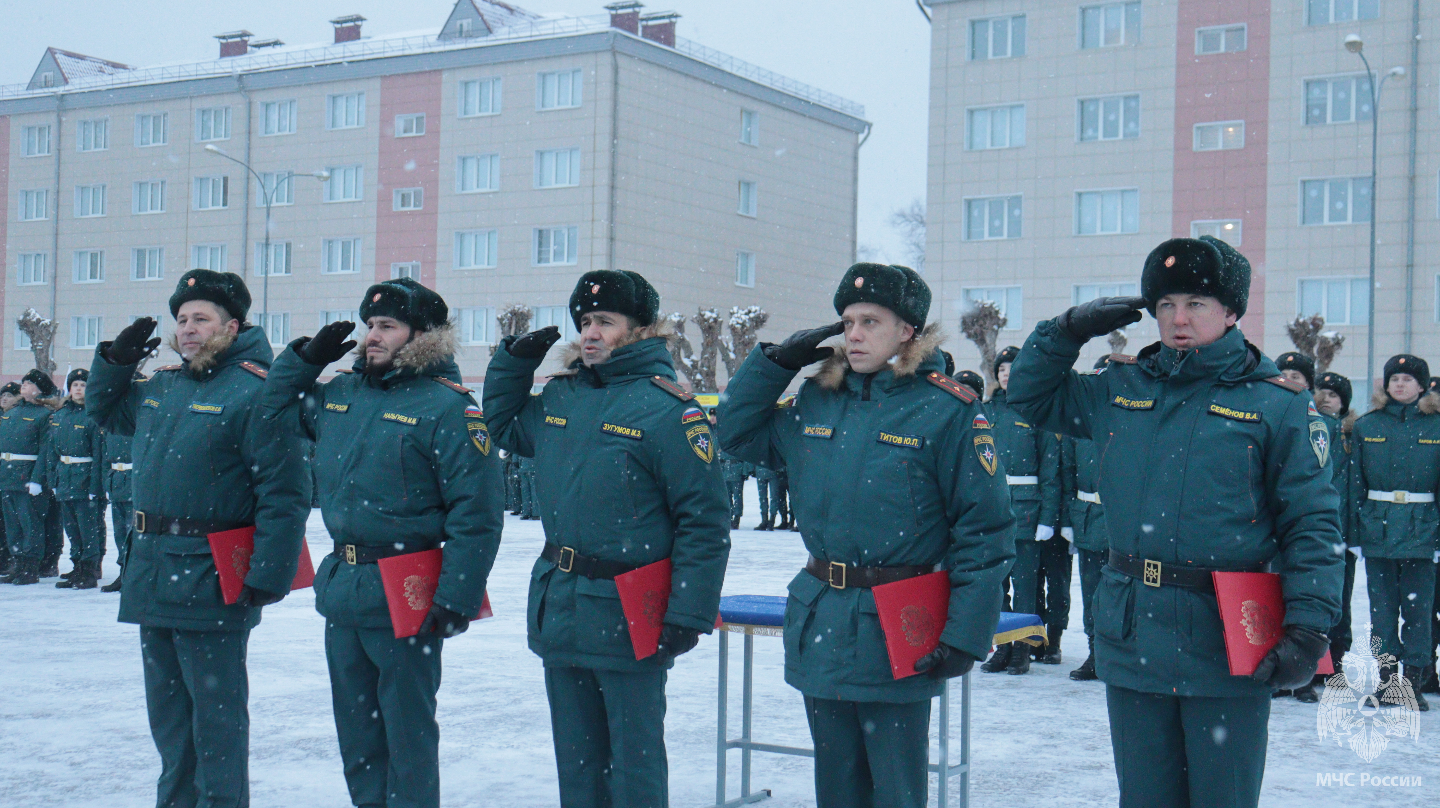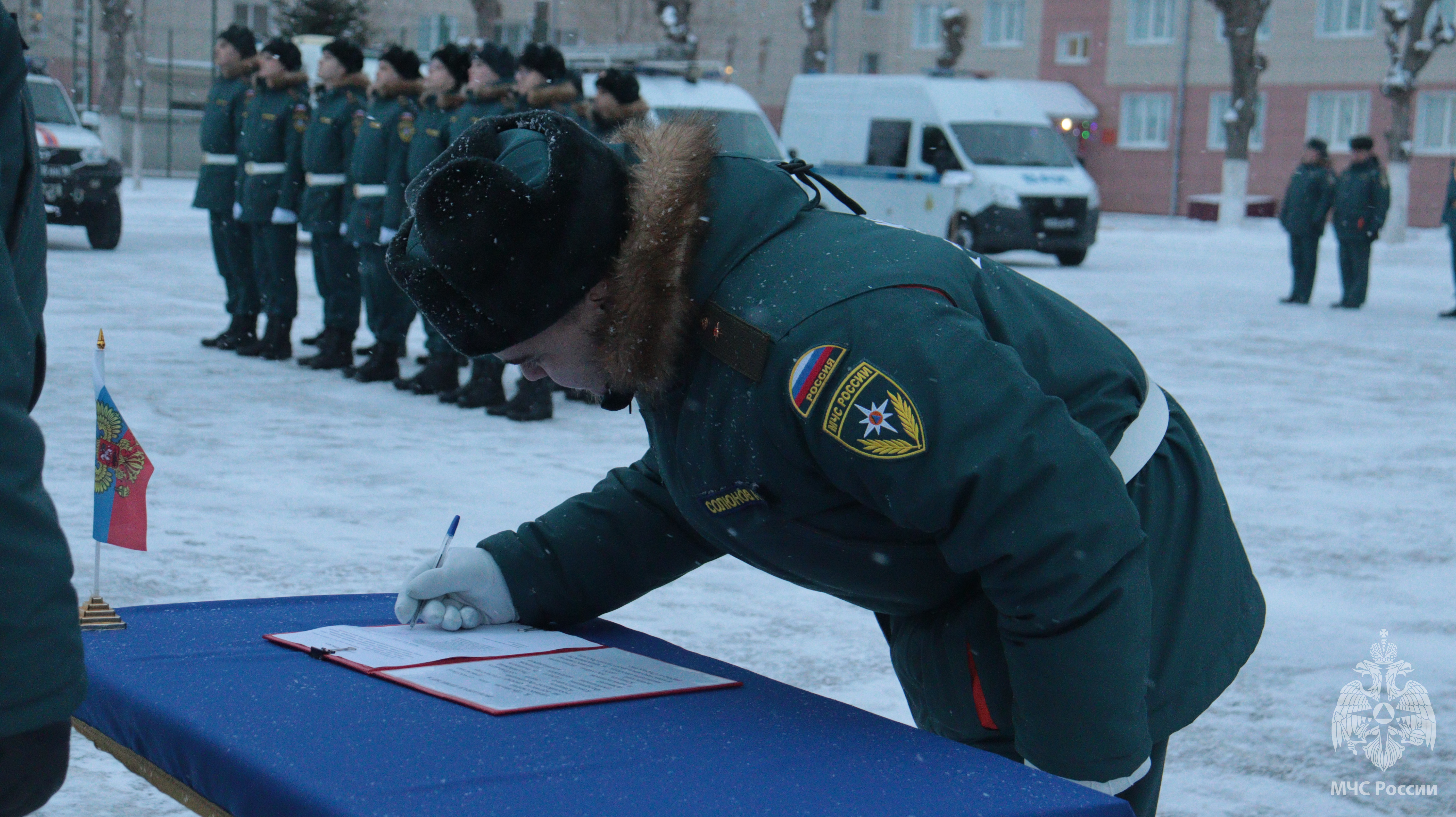 Утром, 26 декабря, на территории Волжского спасательного центра собрались родные, близкие и друзья военнослужащих, проходящих военную службу по призыву.